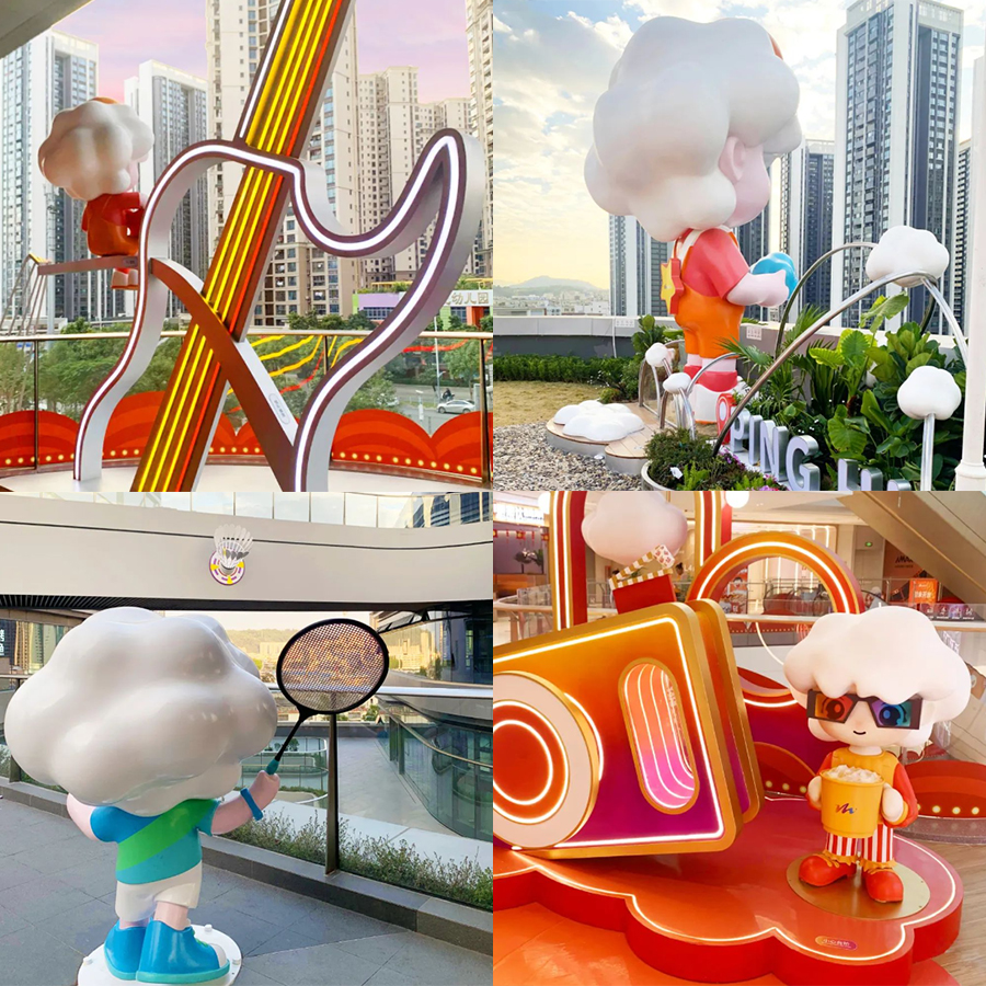 有趣的是,項目還推出了原創(chuàng)IP「多多」,作為項目與消費者對話的符號,以云朵為靈感,化身不同的角色,串聯起星空廣場、藝術連廊、屋頂公園等戶外空間場景,使獨特的記憶符號變得豐滿,憑無界創(chuàng)意加速突破商業(yè)空間界限,賦能多元互動體驗場景。