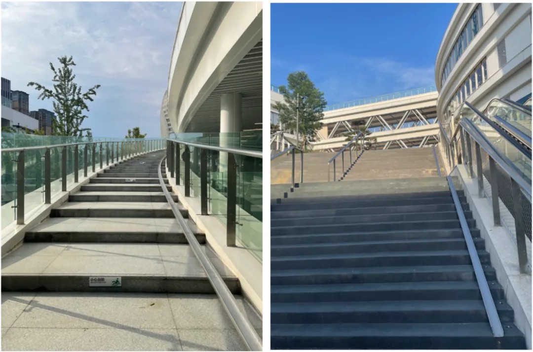 “騎行友好”是CyPARK的核心標(biāo)簽。在這座立體公園中,各樓層的垂直交通上,專門設(shè)置了自行車滑道和能容納自行車體量的直梯,騎行者可以騎行通過(guò)任意樓層,讓騎行游逛商業(yè)成為可能。每個(gè)樓層還設(shè)置了自行車停放處,騎行者可以自行掃碼加鎖,也可以在此處休憩。