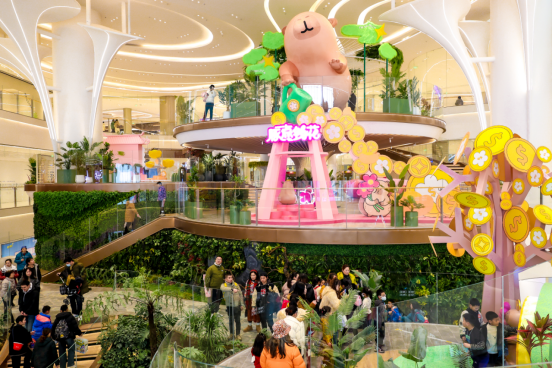 去年12月下旬開(kāi)業(yè)的成都天府招商花園城位于成都天府新區(qū),商業(yè)體量26萬(wàn)㎡,是國(guó)內(nèi)首座超大型公園商業(yè)。項(xiàng)目以“三首層”設(shè)計(jì)融合梯田退臺(tái)、裸眼3D屏等外部元素,打造2萬(wàn)㎡兒童探索樂(lè)園及城市運(yùn)動(dòng)中心,引入40+城市及區(qū)域首店,通過(guò)“蛋仔派對(duì)”、“卡皮巴拉”雙IP活動(dòng)快速聚客,重塑公園商業(yè)范式。