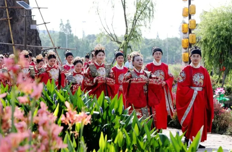 一场古典又浪漫的集体婚礼在湖口县江豚湾公园举行。活动现场布置简约而喜庆,新人在嘉宾和亲朋好友的见证下喜结连理、缔结爱的承诺。拜天地、结发礼、合卺礼、告天礼、新婿描眉……一个个颇具仪式感的环节之后,在现场亲朋好友、嘉宾来客的祝福和掌声中,新人们携手奔赴婚姻殿堂。